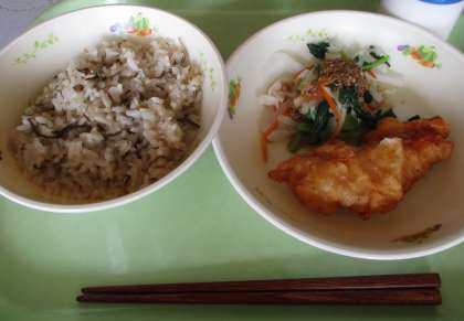 1年生のみんなは教室に行く前からワクワクしていました。 2年生の教室に行くと、すごくたくさんの種類のお店屋さんがありました。 それぞれ工夫したお店屋さんがあり、1年生のみんなは教室に帰ってくるときえがおいっぱいでした。 2年生のおにいさん、おねえさん、ありがとうございました。 ![]() ![]() 4年生 整美ビンゴへの挑戦!![]() ![]() 人気のメニュー(給食)![]() ![]() ![]() ![]() ![]() ![]() 予定より少しやわらかく火が通ったじゃがいもでしたが、ミニグラタンのような仕上がりでした。 3枚目 今日のメニュー「とりてん」 とりむねにくを柔らかくてんぷらに仕上げるのは難しいですが、ふんわりおいしい「とりてんぷら」でこどもたちから「おいしかった〜。また食べたい!」とうれしい声があがっていました。 9月29日の給食![]() ![]() ![]() ![]() ありがとうございます クロンさんへのお花