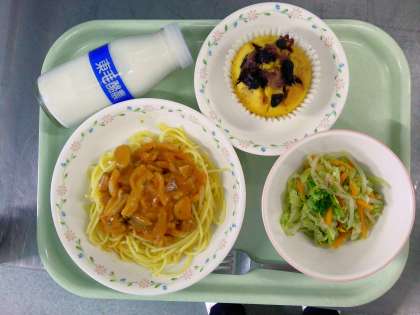 管理職や教員が参観して、互いに授業力を高める取組として行っています。 こどもたちの「伝え合う力」を伸ばす授業づくりを目指しています。 授業では、楽譜をもとに旋律の特徴を確認しました。 そして、こどもたちとの話し合いの中から「友達の声を聴き合いながら、旋律を重ねて歌おう」を学習のめあてに設定しました。 譜面台を2人1組で使うことで、自然とペアで話し合う姿が見られました。 10/31 ハロウィンマフィン