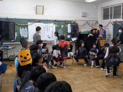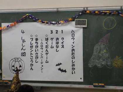 クイズやお話、ゲームと、盛りだくさんの内容をみんなで楽しみました。 思い思いに着飾ったり盛り上げたりと、雰囲気を味わっていました。 10/31 4年生 音楽2