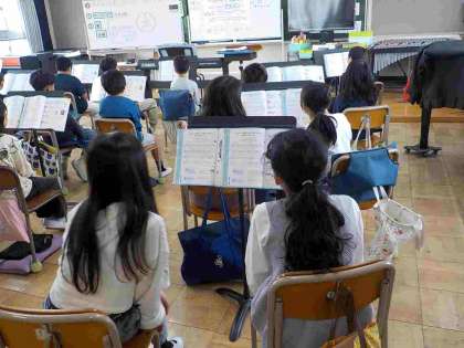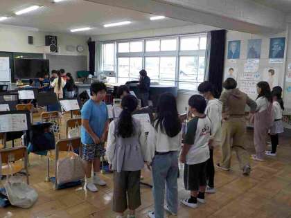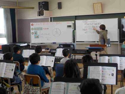 課題をもって、聴き合うことで、具体的なアドバイスをし合っていました。 「もう1回やりたかった」 と、歌の聴き合いを楽しんでいました。 笑顔で歌う子、リズムをとりながら歌う子など、こどもたちのやる気が伝わってくる1時間でした。 10/31 4年生 音楽1