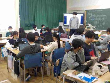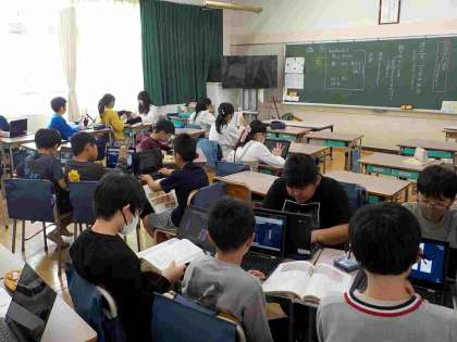 実験の数値(おもりの重さやおもりをつける位置)を班で話し合って決めました。 話し合う中で、位置と重さの関係について考えを深めていました。 総合的な学習の時間では、日光についての発表準備を進めました。 友達と相談して、スライドの見やすさを確認するなど、伝える相手を意識して作成しました。 どの授業でもグループ学習のよさが表れていました。 11/5 6年生 国語 体育