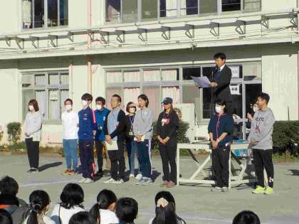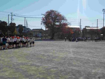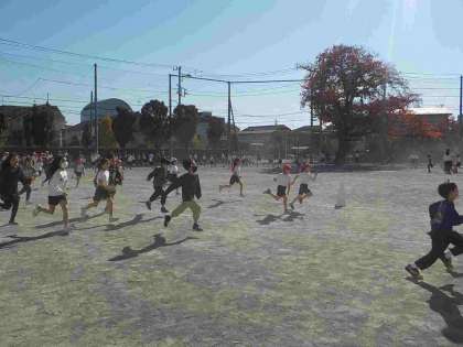 体力向上を目的に、朝の時間(朝活)や中休みに実施する運動の取組です。 中休みは、2・3・5年生のこどもたちが校庭に集まり、準備運動後に元気いっぱい走り始めました。 「自分のペースで」「自分の記録に挑戦」を念頭に、当日の体調・自分の体力に合わせて、無理なく頑張ってほしいです。 11/17 全校朝会(紹介・表彰)