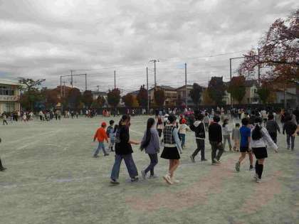 本日もみんなで準備運動をしてからスタートしました。 音楽が流れている間、走ります。担当の教員が励ましの声掛けをします。 走り終えた後は、ゆっくり歩きながら呼吸を整えます。 見学のこどもたちも走っている友達に声援を送っていました。 みんな寒さに負けずに頑張っています。 11/17 吉野汁