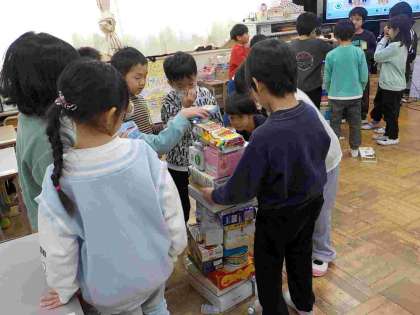 図に描き表したり、箱を積み重ねたりする体験を通して、かたちの特徴を捉えていきます。 図形の描き方を考えながら、ノートに描き表しました。 また、箱を使い、形をなぞって表現する学習や積み重ねる学習を通して、形の特徴を楽しみながら学習しました。 11/18 マラソン旬間