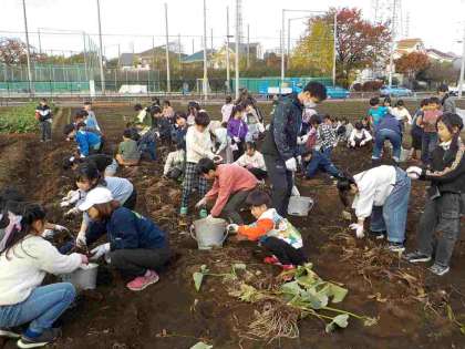 「うあっ!いっぱい出てきた!」 里芋の収穫が初めてのこどもたちがほとんどでしたので、驚きと発見の多い里芋掘りになりました。 11/19 2年生 里芋掘り1