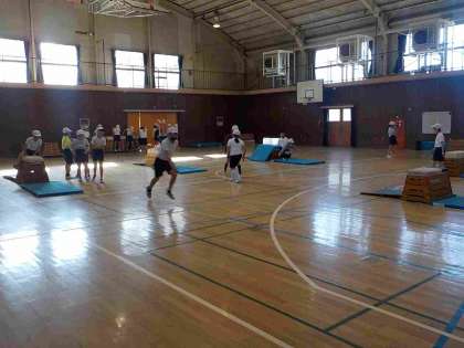 鏡で光を集めると明るさや温度はどうなるか、班ごとに鏡の枚数と明るさや温度をグラフに表し、考察しました。棒グラフに表すことで、視覚的にも結果が分かりやすくなり、活発に考えを出し合っていました。 算数では、コンパスを使い、円を描きました。描き表すことを通して、「半径」や「直径」の意味を確認しました。何度もコンパスを使うことで、教具の使い方に慣れるようにしていきます。 11/19 4年生 体育 図工
