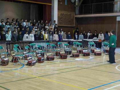 体育館へ楽器を運び入れ、合同練習の準備が整いました。本日から各学級で行っていた練習から学年での練習に入りました。合唱と合奏の並び順を確認して、合同練習を行いました。 11/20 けやき学級 ランチョンマット