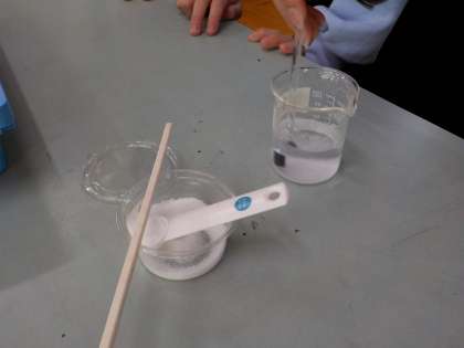 カードのイラストやスペルをもとに発音を確認したり、会話をしたりする学習をしました。 理科の学習では、ものの溶け方について実験を行いました。 食塩とミョウバンを水に溶かして、溶ける量や違いなどに注目して考察しました。 11/27 小平カルちゃんサラダ