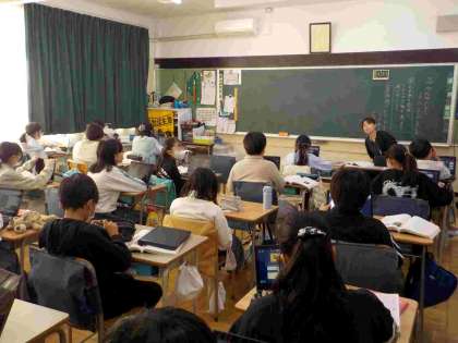 11月最後の給食のメニューはポークカレーライスでした。カレーライスはこどもたちにとって大人気で、戻ってきたワゴンを見るとカレーが入っていた食缶はほぼ空になっていました。また、食べ終わるのも早いので、「ごちそうさまでした」の声がいつもより早い時刻に聞こえてきました。 11/28 5年生 国語 社会