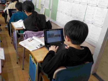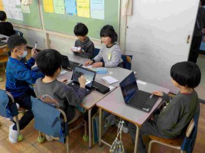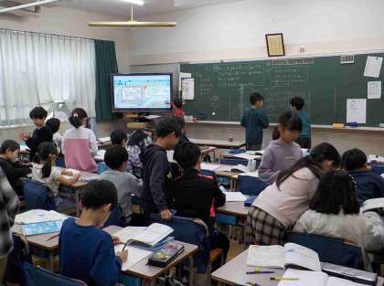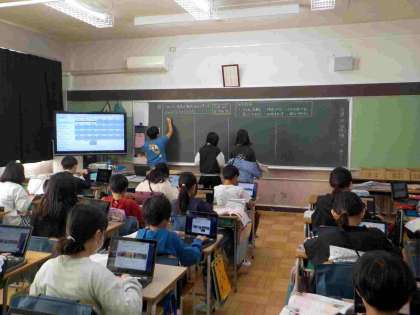 読み取った内容を友達と確認したり共有したりして、考えを整理しました。 社会科の学習では、教科書や資料集から調べる情報を読み取り、まとめました。 学習用端末を使い、情報をまとめ、端末内で友達の記述と見比べたり、黒板に書き出したりして考えを深めました。 11/28 5年生 外国語 理科