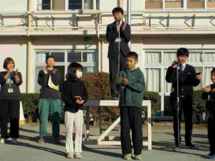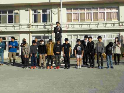 本日は、とても暖かくこどもたちは、元気に走り回りました。 給水タイムでは、水分補給をしっかりして集合しました。 12/1 全校朝会(表彰)2