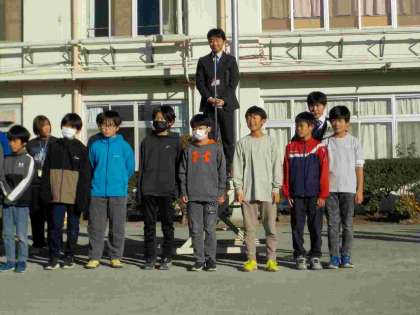 今朝は、「マラソン旬間」についてお話をします。 昨日は、小平市少年少女マラソン大会がありました。十二小からもたくさんの友達が参加しましたので、このあと紹介します。 十二小では、今日からマラソン旬間が始まります。校長先生からは、2つ話をします。 第1に、「自分のペースで走る」です。 マラソン旬間の目標は、自分なりに頑張って体力をつけることです。走りやすい自分のペースで頑張ってみてください。インフルエンザや風邪などが流行っていますので、その日の体調をみて、無理せず走りましょう。 第2に、「昨日の自分に挑戦」です。 誰かと競争するのではなく、昨日の自分の記録よりも少しでも記録を伸ばしていく目標を立ててみてください。続けていくと必ず記録が伸びていきます。ぜひ昨日の自分に挑戦してみてください。 一生懸命取り組んだ経験は、学習でも生活でも何にでも生かせる大きな「宝物」になります。みんなで楽しく挑戦していきましょう。 これで校長先生のお話を終わります。 11/12 避難訓練 校長挨拶