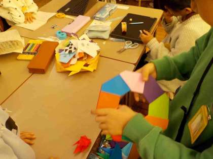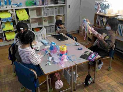 折り紙やスズランテープなどで作品を作ったり、手品の練習をしたりと、同じ係の友達と協力して活動しました。 友達が喜ぶ企画を話し合って考えていました。 12/1 1年生 体育
