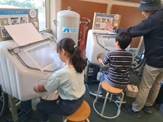 デザインが終わると、ブラスト(砂の吹き付け)をします。 上手にブラストしています。 10/17 けやき学級 宿泊学習5