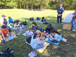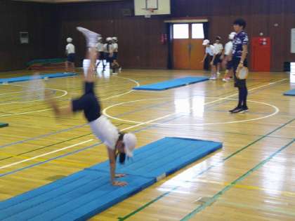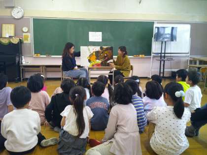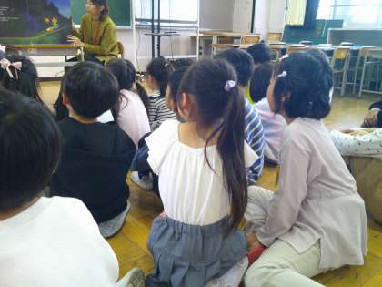 脚をまっすぐに伸ばして、頭の上を足が通るように回転することがベストです。いきなりは難しいので、腰を高く上げる練習をしたり、友達に見てもらってアドバイスをもらったりと、自分の課題に応じた練習に取り組んでいました。 できないとすぐに諦めてしまいがちですが、できるようになろうと一生懸命頑張る姿がとても印象的でした。 10/17 よみきかせ会