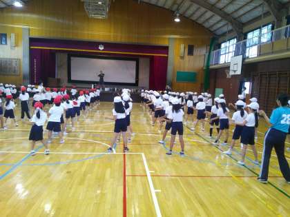 【2年生】運動会準備![]() ![]() テープを1枚ずつはがすのに、「たくさんあるなあ。」と言って大変そうでしたが、仕上がったポンポンを腕にはめると、一気にやる気モードになっていました。 9月29日(月)の給食![]() ![]() ![]() ![]() ![]() ![]() 「給食DE世界旅行」第6回目は「アメリカ料理」です。 「ジャンバラヤ」は、ケイジャン料理の一種で、アメリカ合衆国南部のルイジアナ州で庶民の味として愛されている郷土料理です。 真ん中の写真は、「ジャンバラヤ」が炊き上がったところです。 「チキンヌードルスープ」は新メニューです! アメリカの家庭料理で、アメリカでは風邪気味などで食欲がないときに食べる定番メニューです。 また今日、9月29日は「洋菓子の日」です。アメリカでもよく食べられている「パンケーキ」を作りました。 新メニューです! 一番下の写真は、パンケーキの生地をカップに流しているところです。 「ジャンバラヤがおいしかったです。」 「パンケーキがおいしかったです!またつくってください。」 などの感想が書かれていました。 【4年生】十三小フェスティバル![]() ![]() ![]() ![]() ![]() ![]() 【2年生】十三小フェスティバル本番2![]() ![]() ![]() ![]() 一人一人、一生懸命対応していました。 他の学年のお店も楽しんで回っていました。 【2年生】十三小フェスティバル本番1![]() ![]() ![]() ![]() 黒板もみんなで描いて、気持ちも盛り上がっています。 【1年生】十三小フェスティバル![]() ![]() ![]() ![]() ![]() ![]() 9月26日(金)の給食![]() ![]() ![]() ![]() ![]() ![]() 「ホットミートサンド」は、ミートソースの具を作り、パンにはさんでからアルミホイルで包み、オーブンで焼きました。 アルミホイルで包んであるので、あたたかい状態で食べることができます。 真ん中の写真は、パンに具を挟んでいるところです。 一番下の写真は、アルミホイルでパンを包んでいるところです。 「ごぼうのカリカリサラダ」は、揚げたごぼうをサラダのトッピングにしました。 スープはカレー味にしてスパイスを利かせることで、減塩になります。 「ホットミートサンドがおいしかったです。」 「スープとミートソースがのうこうでおいしかったです。」 などの感想が書かれていました。 【2年生】十三小フェスティバル前日準備![]() ![]() ![]() ![]() 準備もだいぶ進みました。 あとば、本番を待つのみです。 たくさんのお客さんに楽しんでもらいたいと張り切っている2年生です。 【2年生】運動会練習![]() ![]() みんな集中して取り組んだので、覚えるのが早く、たくさんの新しい振り付けを覚えました。 全曲通して踊れる日も近いです。 【2年生】学級会![]() ![]() ![]() ![]() 学級会で、「『1年生となかよくなろうかい』をしよう」という議題で、1年生と一緒に遊ぶ遊びの内容を決めました。 1年生のことも考えた意見がたくさん出されました。 【1年生】運動会練習2![]() ![]() ![]() ![]() 9月25日(木)の給食![]() ![]() ![]() ![]() ![]() ![]() 「せいだのたまじ」は、山梨県上野原市の郷土料理です。 今日の給食では、じゃがいもを切って素揚げしたものを、みそだれにからめました。 みそだれは、赤みそ、さとう、みりん、水、白ごまを合わせて作りました。 真ん中の写真は、素揚げしたじゃがいもです。 一番下の写真は、「高野豆腐のそぼろごはん」を炒め煮しているところです。 高野豆腐の煮物は苦手という子が多いですが、このそぼろごはんは好き嫌いせずに食べてくれます。 「全ておいしかったです。また作ってください!!こうやどうふのそぼろごはんがおいしかったです。」 「せいだのたまじがめっちゃおいしかったです!また出してください!」 などの感想が書かれていました。 9月24日(水)の給食![]() ![]() ![]() ![]() ![]() ![]() 「なすのミートグラタン」は、旬の小平産なすを使って作りました! なすが苦手な人にも食べやすいように、なすを素揚げしてからミートソースの中に加えました。 真ん中の写真は、カップの中に具を入れているところです。 じゃがいもが崩れるのを防ぐため、蒸したじゃがいもを先にカップに入れておき、ミートソースをかけました。 一番下の写真は、パセリとチーズをかけているところです。 「なすのミートグラタンがおいしかったです。」 「やさいスープがおいしかったです。」 などの感想が書かれていました。 【2年生】運動会練習![]() ![]() 隊形移動を中心に行いましたが、スムーズに動くことができました。 踊りも徐々に自信をもって踊れるようになってきています。 9月22日(月)の給食![]() ![]() ![]() ![]() ![]() ![]() 今日の給食は、お彼岸にあわせて「二色おはぎ」を作りました。 「きなこ」と「ごま」の2種類のおはぎで、中にはあんこが入っています。 給食室で小豆を煮てあんこを作り、ごはんを炊いてつぶし、ごはんであんこを包み…と、とても手間がかかっています。 真ん中の写真は、あんこを人数分に分けているところです。 一番下の写真は、ごはんであんこを包んでいるところです。 「おはぎが