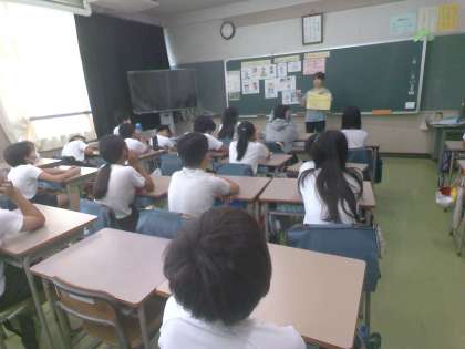 2学期の身体計測を行いました。その後教室に戻り、「目を大切にする生活について考えよう」という授業を受けました。視力が1.0未満のこどもたちの割合が増えてきているそうです。「画面から30cm以上離れて見ること」「30分に1度は20秒遠くを見て目を休めること」「屋外活動を2時間以上すること」を実践していきましょうというお話でした。日々意識して生活できると良いですね!
