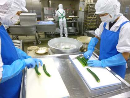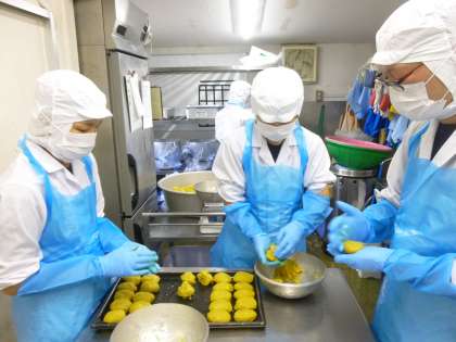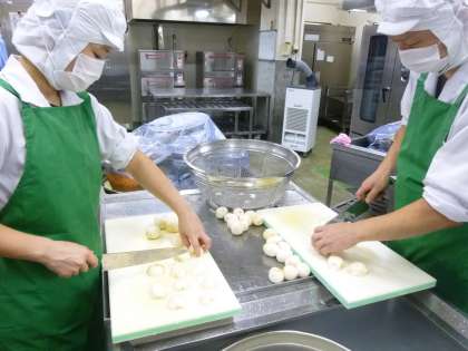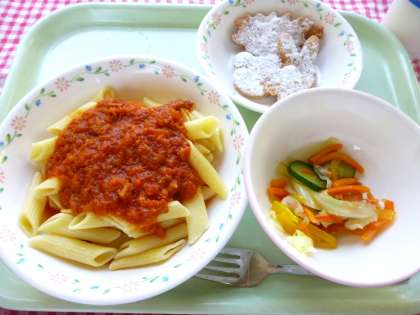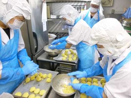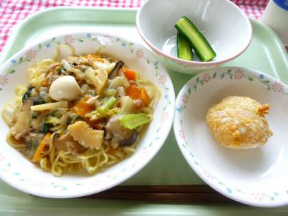 運動会練習 【1年生】![]() ![]() ![]() ![]() 今日の練習では、細かい踊りの確認を中心に行いました。 こどもたちは、踊るポイントをマスターして、かっこよく踊りたいと話していました。 【2年生】十三小フェスティバルに向けて![]() ![]() ![]() ![]() 2年生は、「ミステリーボックス」をします。 工夫できそうなルールを考えたり、ミステリーボックスを作ったりしています。 お客さんに楽しんでもらえるように・・・と張り切っています。 9月18日(木)の給食![]() ![]() ![]() ![]() ![]() ![]() 「チャプチェ」は韓国料理で、春雨の炒めものです。 給食では、油でにんにく、トウバンジャン、ぶた肉、たまねぎ、にんじん、たけのこ、エリンギを炒め、だし、ほうれん草、春雨を加えて調味し、でんぷんでとろみをつけて仕上げました。 真ん中の写真は、だしを取っているところです。 今日はかつお節で和風だしを取り、スープに使いました。 チャプチェは鶏ガラでだしを取りました。 一番下の写真は、セリー液をカップに流しているところです。 今日は寒天を使って固めました。 「チャプチェおいしかったです。」 「カルピスゼリーがとってもおいしかったです。」 などの感想が書かれていました。 【1年生】運動会練習開始![]() ![]() ![]() ![]() 【2年生】セーフティー教室![]() ![]() 「いかのおすし」についてのお話を聞いたり、DVDを視聴したりしました。 最後に、各学年の代表によるデモンストレーションをしました。 自分の身を自分で守ることの大切さを学びました。 9月17日(水)の給食![]() ![]() ![]() ![]() ![]() ![]() 「給食DE世界旅行」第5回目は「イタリア料理」です。 「アマトリチャーナ」は、イタリアのローマの代表的なトマトソースです。 今回は「ペンネ」というショートパスタを使いました。 「イタリアンサラダ」は赤ピーマンや黄色ピーマンを使ってイタリアをイメージしました。 「チェンチ」はイタリアのカーニバルのときに食べるお菓子です。 クッキーに似たお菓子で、トスカーナ州で食べられているマンマ(お母さん)の味です。 真ん中の写真は、「チェンチ」の生地を成形しているところです。 ハートやうさぎ、くま、おうちなど色々な型で抜いたり、ひし形や斜めに切ったりして、いろいろな形を作りました。 一番下の写真は、「チェンチ」を揚げているところです。 こどもたちが食べている様子を見に行くと、 「このメニュー全部好き!また作ってください!」 「すてきなメニューを考えてくれてありがとうございます!」 とたくさん声をかけてくれました。 「ペンネアマトリチャーナがおいしかったです。」 「チェンチがおいしかったです!またつくってほしいです。」 などの感想が書かれていました。 9月13日(土)の給食![]() ![]() ![]() ![]() ![]() ![]() 9月15日は「ひじきの日」です。 この日にちなみ、「ひじきの磯煮」を作りました。 また、今日はカレー味のコロッケと、旬の小平産なすを使ったみそ汁を作りました。 真ん中の写真は、コロッケの具を成形しているところです。 一番下の写真は、コロッケを揚げているところです。 「コロッケがサクサクでおいしかったです。」 「カレーコロッケがおいしかったです!」 「全ておいしかったけど、特にひじきがうまかったです!」 「なすのみそしるがおいしかったです。」 「みそしるのだしがおいしかったです。」 などの感想が書かれていました。 ランチルームでの給食![]() ![]() ![]() ![]() 【4年生】福祉体験学習![]() ![]() ![]() ![]() ![]() ![]() アイマスクを着用し、実際に体育館の中を歩いてみるとこどもたちからは「怖かった〜」「ガイドが難しい!」という声が聞こえてきました。 視覚障がい者交流では、日常生活の工夫やどんな助けが必要なのかなどを知ることができました。自分たちの知らなかったことばかりでこれからの生活につながる深い学びになりました。 9月12日(金)の給食![]() ![]() ![]() ![]() ![]() ![]() 9月15日は「敬老の日」です。 お祝いメニューとして、「八宝麺」を作りました。 八宝麺の「八」は8種類という意味ではなく、「たくさんの」という意味があります。 「八宝」は「たくさんの宝物を集めたようにおいしい料理」という意味で、おめでたい料理です。 「じゃがチーズもち」は、じゃがいもを蒸してつぶして塩こしょうで調味し、チーズを加えて丸め、でん粉をまぶし、油で揚げました。 真ん中の写真は、じゃがいもを成形しているところです。 一番下の写真は、きゅうりをカットしているところです。 舟形になるように切りました。 「はっぽうめんがおいしかったです。」 「ふなきゅうりがおいしかったです。」 「じゃがチーズもちがおいしかったです!」 などの感想が書かれていました。 9月11日(木)の給食![]() ![]() ![]() ![]() ![]() ![]() 「せんべい汁」は青森県の郷土料理です。 青森県や岩手県で食べられている「南部せんべい」を汁や鍋に入れた料理で、青森県の八戸地方を中心に食べられています。 せんべい汁に入れる南部せんべいは煮込