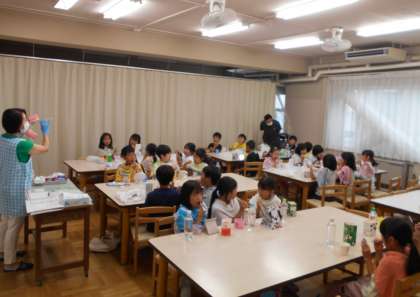 普段は1冊ですが、夏休みということで今回は2冊です! 「えー!いいの!?」 「どれにしようか迷っちゃう〜。」 と、楽しそうに本を選んでいました。 気合いを入れて、ページ数が多い本を選ぶ児童も多くいました。 夏休みもたくさんの本を読みましょう! ![]() ![]() ![]() ![]() 【1年生 生活】水遊び