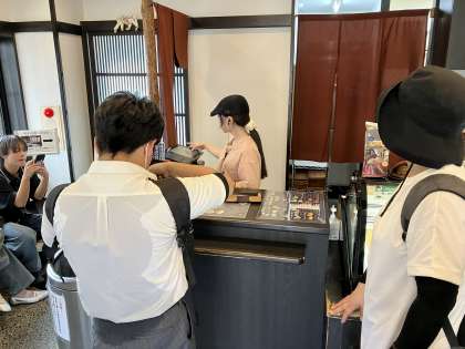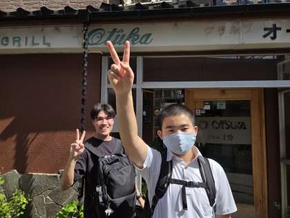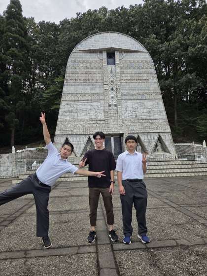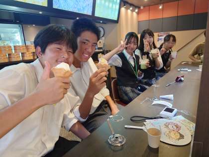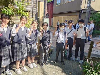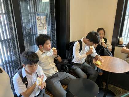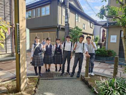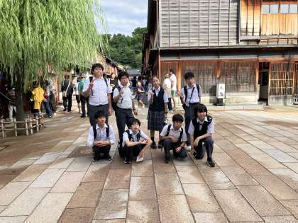 ひがし茶屋街で集合写真を撮りました。その後、茶屋街を散策してスイーツを食べました。