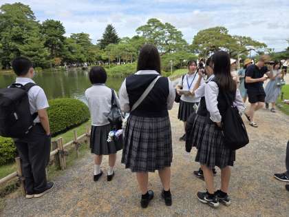 S組も兼六園は金沢商業高校のみなさんのガイドとともに見学していきました。