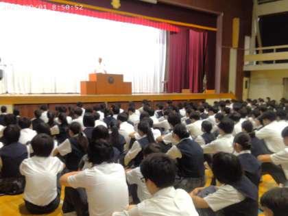 長い夏休みが終わり、いよいよ2学期がスタートしました。気持ちの切り替えが難しい日ですが、久しぶりに顔を見ることができて安心しました。実り大き夏の成果を、2学期の授業で発揮されることを願っています。保護者の皆様、2学期もS組の教育活動に御理解・御協力の程、よろしくお願いいたします。