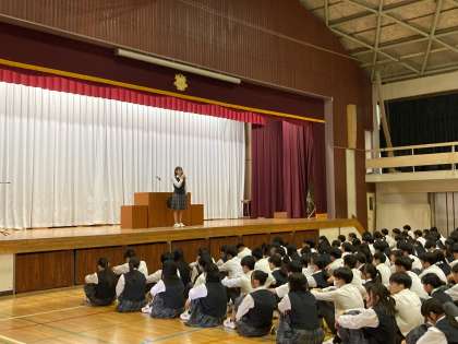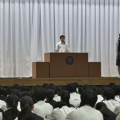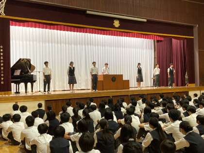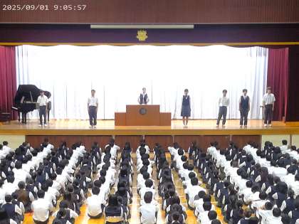 2学期の始業式では、夏休みに大きな大会を終えた部の代表者による報告や、生活委員長による整列指示、指揮者伴奏者による校歌がありました。2学期のスタートから生徒が学校を動かしていく場面が多く見られました。本校では引き続き「非認知能力を高める指導方法の工夫」として、生徒の主体性を高める教育活動を推進していきます。