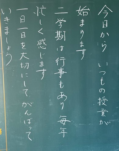 長い夏休みが明け、いよいよ2学期が始まりました。2学期には二中の2大行事である合唱コンクールがあります。その中で、今年度の二中のテーマである非認知能力を向上できるように、学習面はもちろんですが、目には見えない力も伸ばしていけるよう指導していこうと思います。教員一同生徒と共に頑張っていこうと思いますので、2学期も何卒よろしくお願いいたします。
