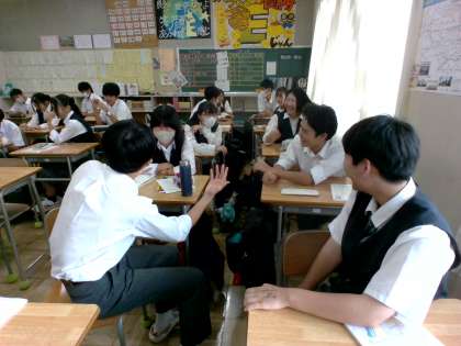 「目の見えない人はどのように美術作品を鑑賞しているのでしょうか。」目の見えない人の役、案内する人の役、体験を踏まえ、自分たちが感じたことや考えたことを話し合っています。よりよい社会を築くためにはどんなことが大切か、じっくり考えるよい時間になりました。