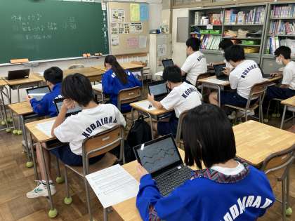 音楽の授業で作曲をしました。クロームブックを活用して「歓喜のうた」を一人一人オリジナルの編曲をしました。
