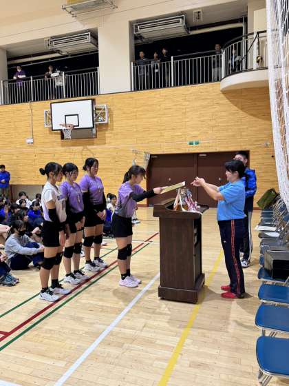 10月19日に国分寺五中で行われたバレーボール10ブロック新人大会で、本校女子バレーボール部は、準決勝リーグで負けた国分寺五中を相手に決勝戦で接戦を制し、見事優勝しました。