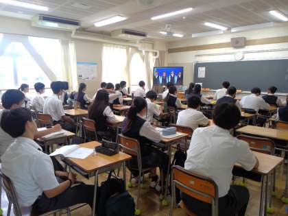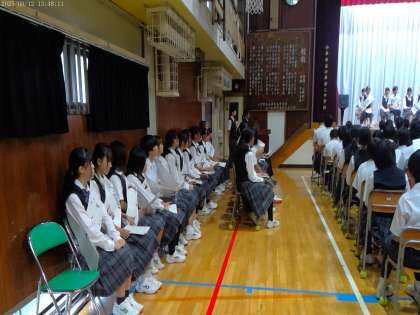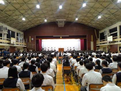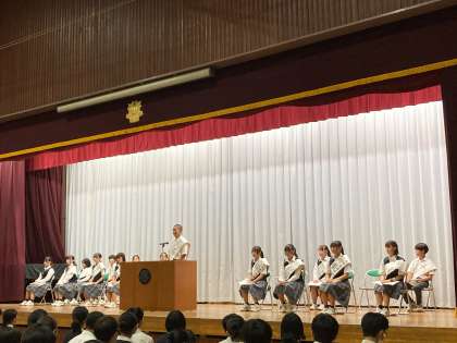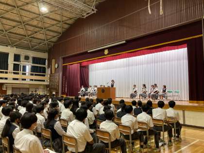 また、話を聴いている全校生徒の姿も立派でした。立候補者や応援演説者を合わせておよそ30名の生徒による演説がありましたが、どの生徒も真剣な眼差しで話を聴いていました。2学期始めの大きな行事を全校生徒でよいものにすることができました。