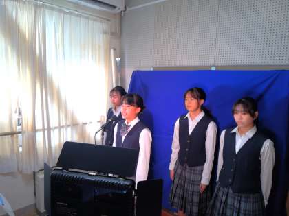 9月16日(火)生徒会朝礼を放送で行いました。3年生の現本部役員が集まり、代表して生徒会長が今までの御礼とあいさつを行いました。近日中に新役員に引き継がれます。