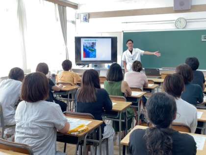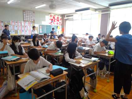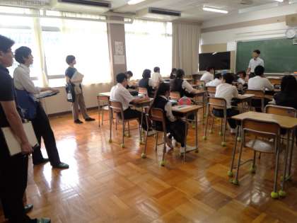 9月16日(火)教育委員会より3名の方が来校し、1年生英語の少人数授業を視察しました。2学級を3展開した各学級を訪れました。「友達やキャラクターを紹介して、魅力をクラスメイトに伝えよう」という内容、スピーチ原稿を作成を行いました。生徒と担当教諭の関係性がわかる授業、と講評を受けました。
