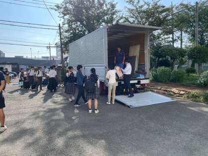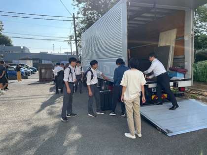 9月17日(水)朝、明日から始まる修学旅行に向けて、3年生が大きな荷物をトラックに積み込みました。荷物は一足先に石川県に向かいます。