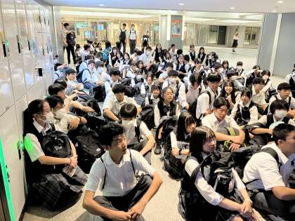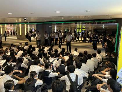 東京駅で出発式をしました。校長先生の話や修学旅行でお世話になる看護師や支援員の紹介をしました。