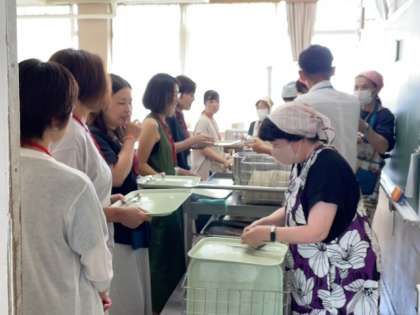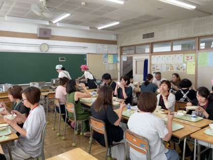 9月17日(水)校内で給食試食会を実施しました。参加した保護者に小平市の給食への取り組みを紹介した後、実際に教室で配膳から喫食、片付けまで生徒と同じ流れで体験いただきました。食育指導の方針や給食の美味しさなど、よくご理解いただけたことと思います。給食後はCS委員が主催して「二中カフェ」を開催し、保護者・CS・学校と話し合い、交流しました。
