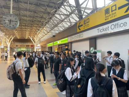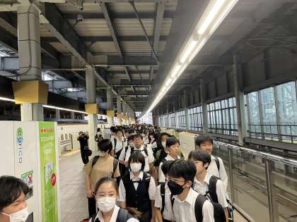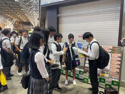 国分寺駅で班毎に出発チェックを受けました。朝早い時間帯から国分寺駅前に多くの3年生が集まりました。チェック後、東京駅に向かいます。