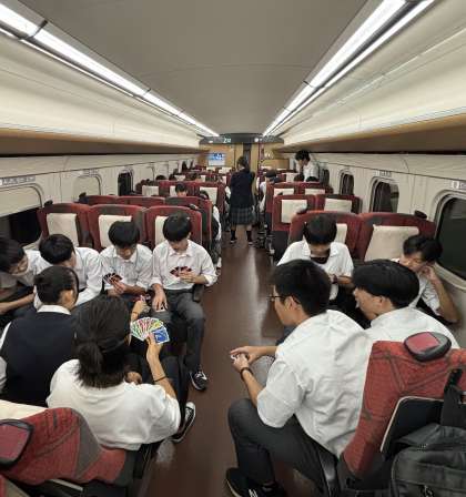 トランプをして遊んでいるようすです!みなさんいろんな遊びをしながら新幹線を満喫しています!あと1時間ほどで金沢駅に到着します。
