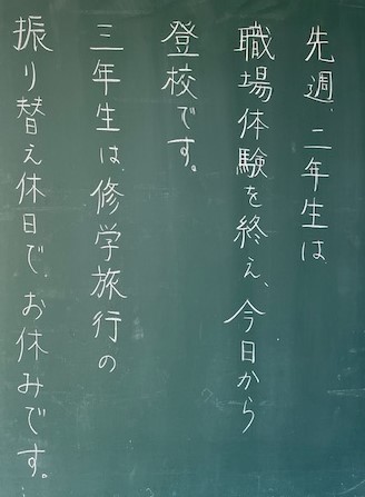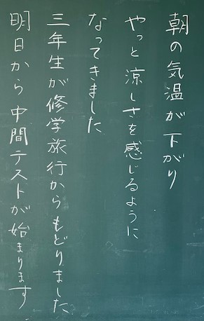 3年生おかえりなさい。全学年が久しぶりに揃い、過ごしやすくなった天候のもと生活していきます。