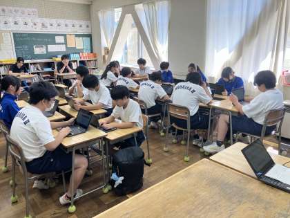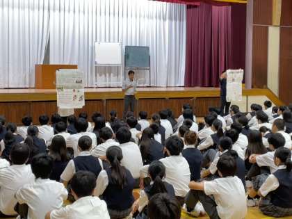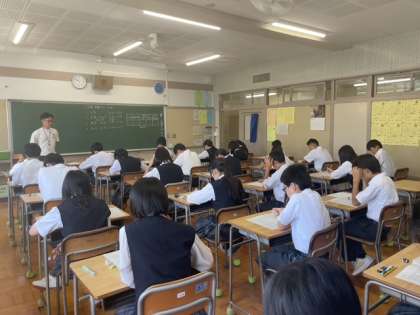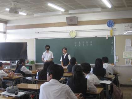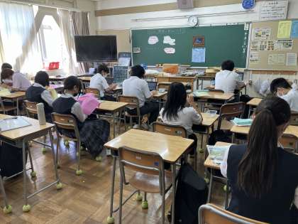 9月22日(月)1年生道徳の授業では「向日葵」を学習しました。東日本大震災で家族を亡くした親の生命への想いを扱った内容です。読み取り、話し合う活動を通して自分事として命の尊さを考えることができました。