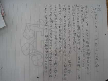 【研究】2学年 職場体験お礼状下書き