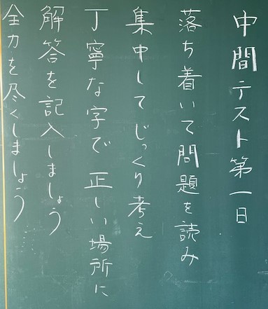 本日より2日間、5教科(3年生は6教科)の試験を行います。