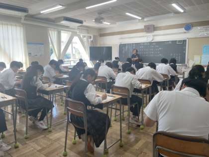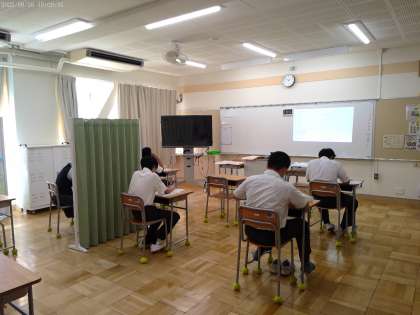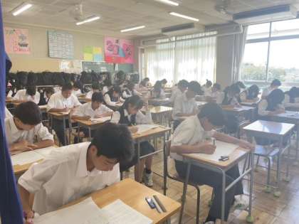 9月25日(木)中間テストが始まりました。今日は英語・数学・社会を各50分で実施しています。英語のテストの様子です。