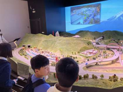 リニア見学センターでリニアの歴史を学んだり、リニアの試走を実際に見学したりしました。