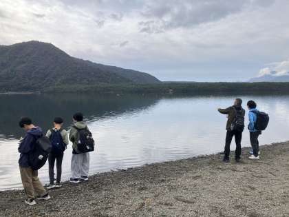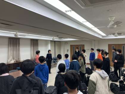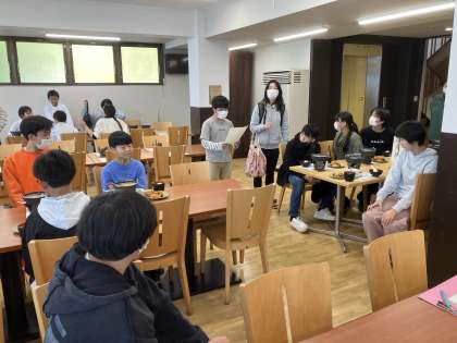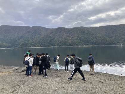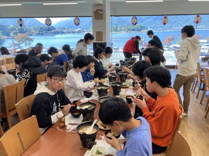 西湖に近い「くわるび」に到着しました。入館式で生徒挨拶と施設の方から話がありました。