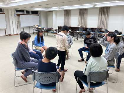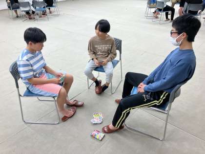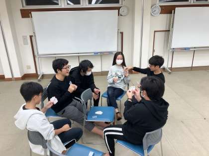夕食が終わり、自由時間を過ごしました。「トランプ」や「何でもバスケット」などをして遊びました。