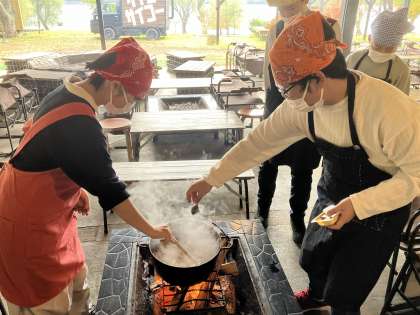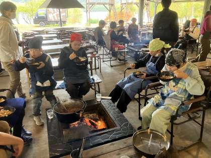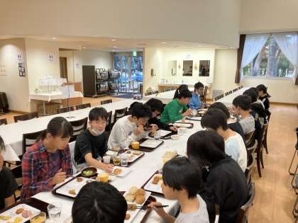 完成したカレーライスを食べました。どのグループも美味しく作ることができました。普段、あまり食べない人もたくさん食べられました。