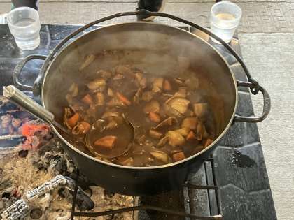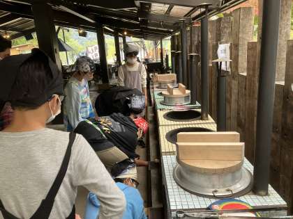河口湖近くのレストランでほうとうを食べました。太いうどんを掴むことに苦戦している人が多かったです。