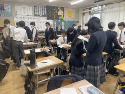 今日から2日間、山梨県で宿泊学習に行きます。教室で開校式をしました。2日間、様々な体験があるので頑張って取り組んでほしいと思います。